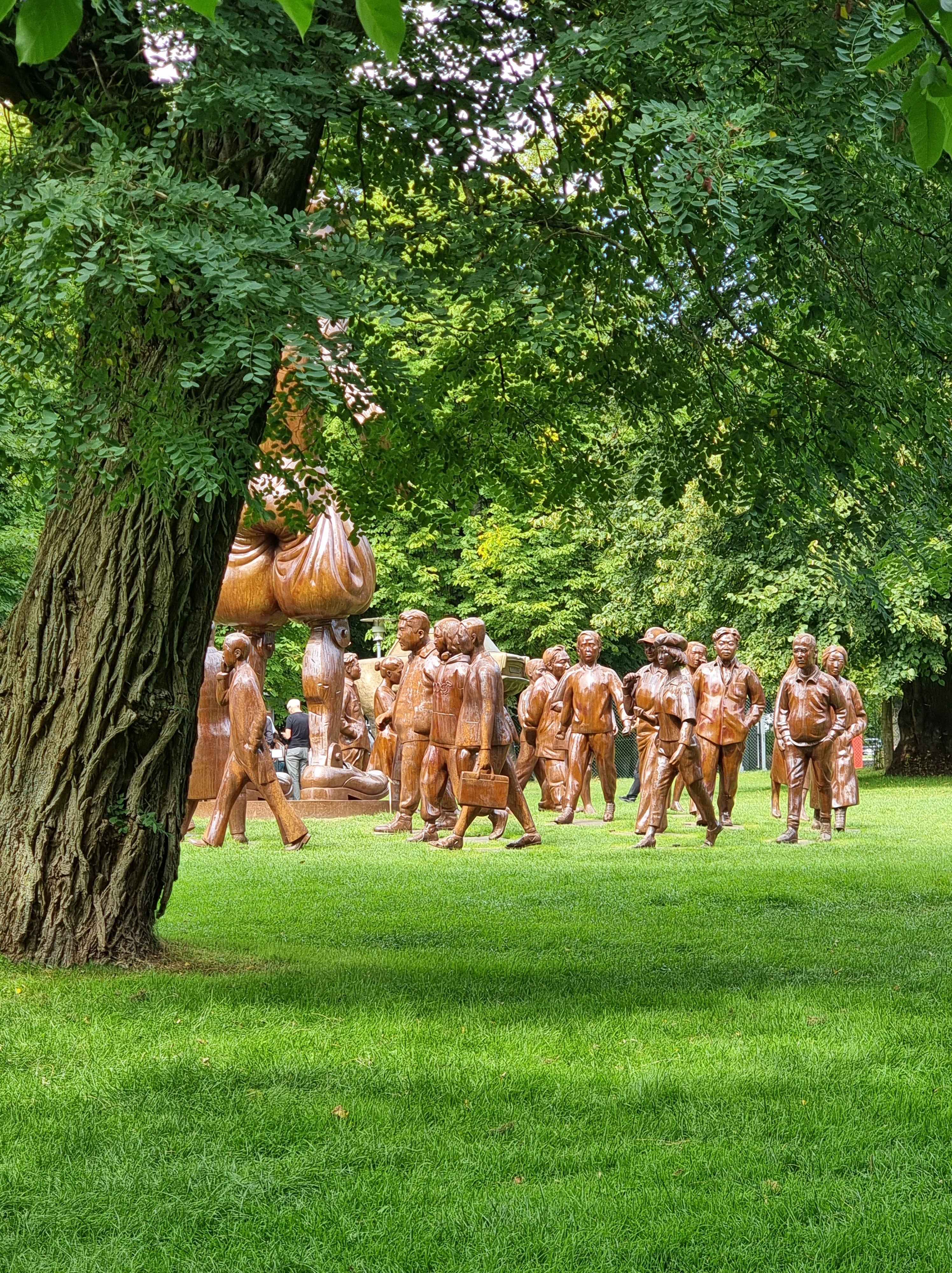 Donnerstag: Freundinnentag. Einmal im Jahr machen meine beste Freundin und ich einen Ausflug. Diesmal geht’s nach Rendsburg, zur Nord Art. Großartig! Kann ich euch nur empfehlen. Eine Beschreibung erspare ich euch, nur so viel: großartige Skulpturen, ein toller Park, in dem sie ausgestellt werden, eine alte Fabrikhalle, in der Bilder und weitere Skulpturen von Künstlern aus der großen weiten Welt ausgestellt sind. Humorvolles, nachdenkliche stimmendes, beunruhigendes, einfach nur schönes. Nach 5 Stunden sind wir kunstgesättigt und suchen uns ein Café. Genießen es, zusammen zu sein, statt immer nur zu telefonieren. Wir beschließen, uns künftig öfter zu treffen. Wie jedesmal.